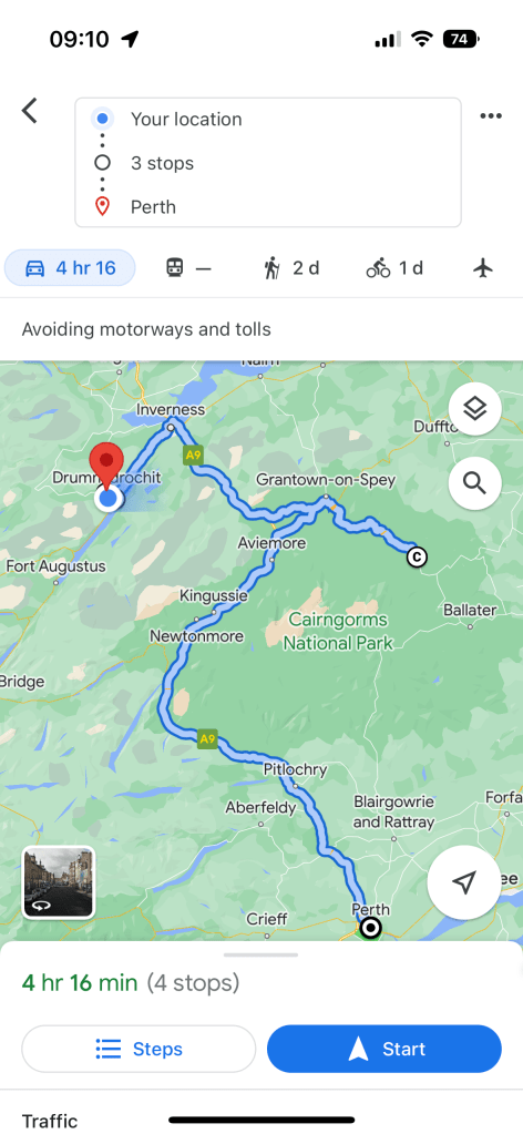 Today we are looking at Loch Ness and a Castle. Then we will pass by Cairngorm National Park and go for Perth which is a city.