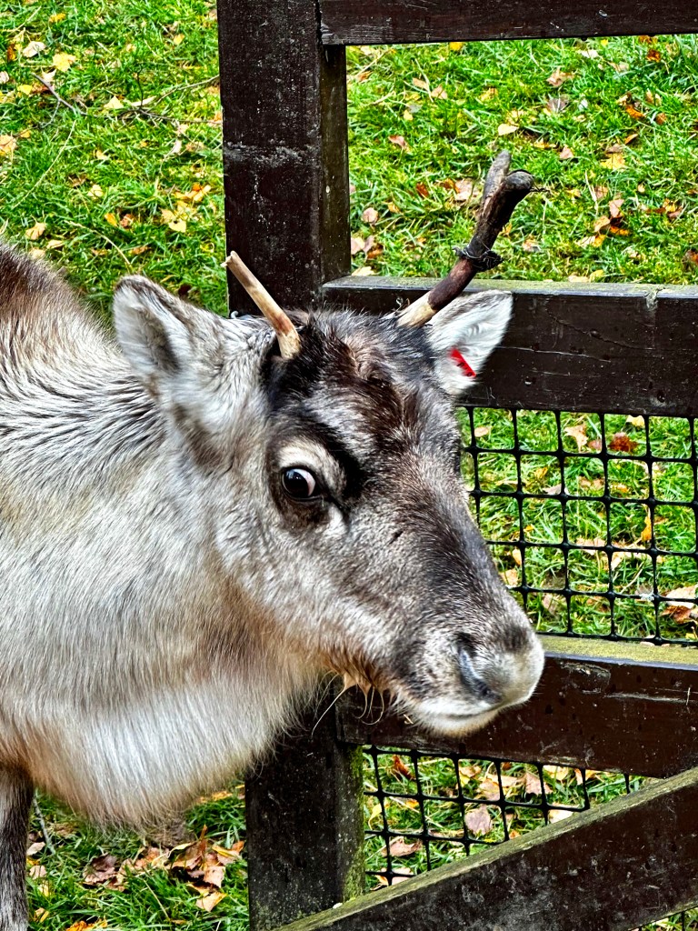 We went to the National Parc to see the reindeers. They are amazing. There is a floc of them grazing upon the hill but we were too late to visit them so we went to the stables. There were 3 guys and 2 calves grazing. So cute!!!